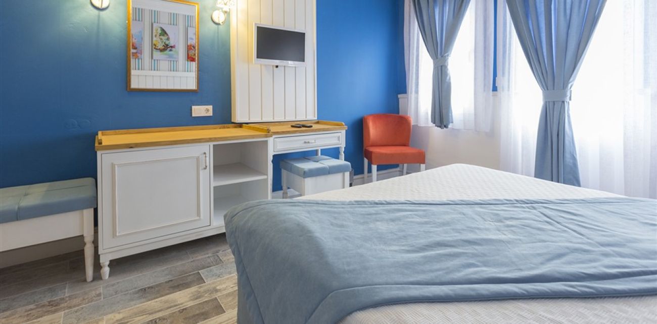 Стаите са оборудвани с климатик, телевизор, сешоар, минибар. Разполагат с малък балкон.