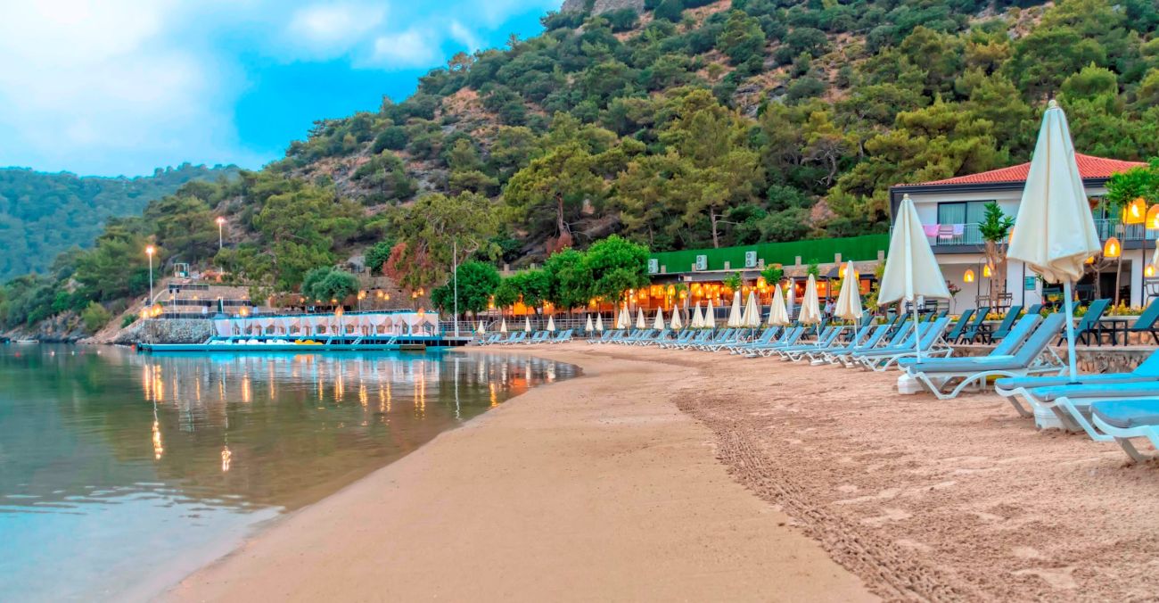 Разположен е на брега на морето, в Национален парк Олудениз. Центърът на Фетие е на около 30 минути с кола. Летището е на 65 км.