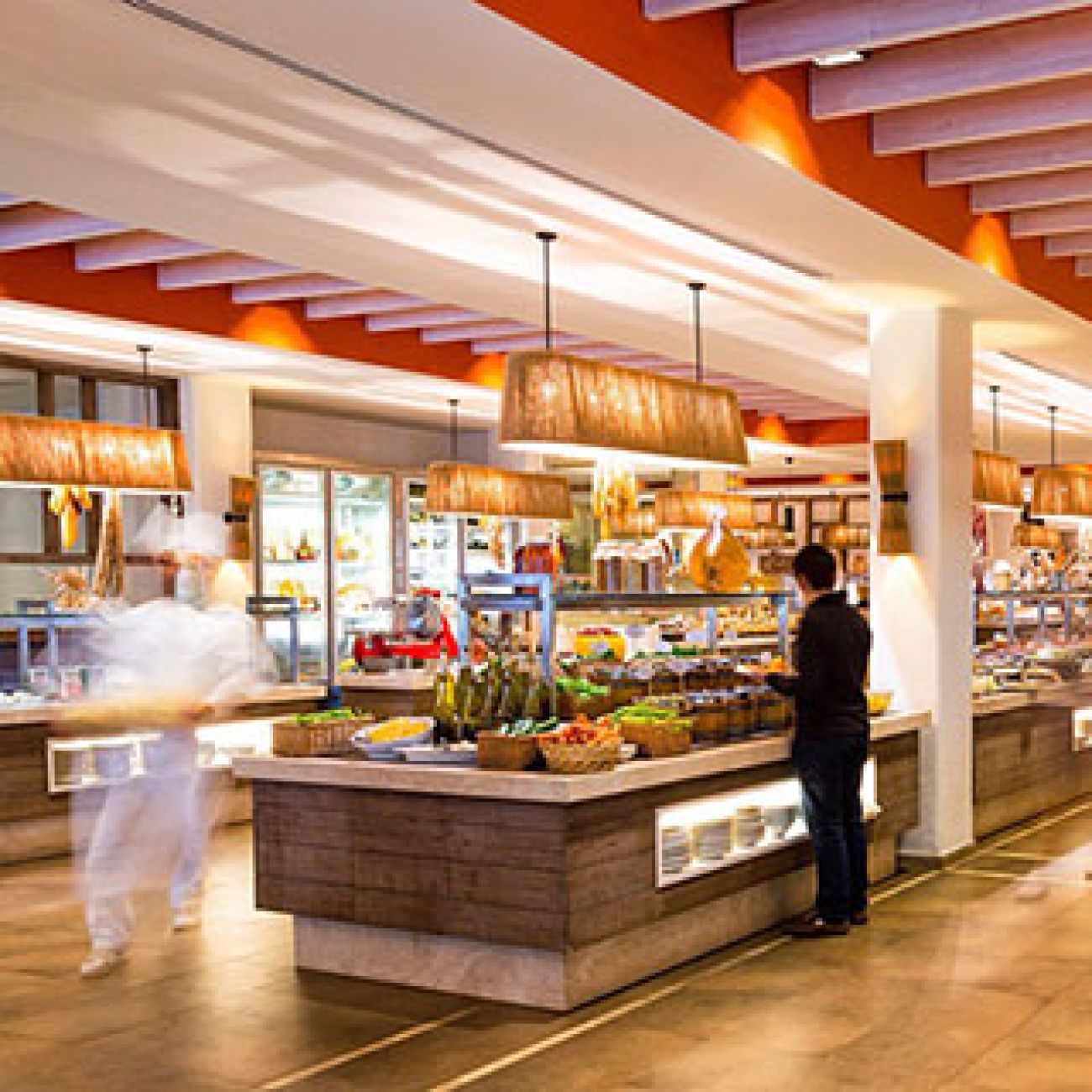 Основен ресторант, а ла карт ресторант със средиземноморска кухня, плажен бар и ресторант за италианска кухня, бар на басейна, дискотека. Плувен басейн, детски басейн, водни пързалки,