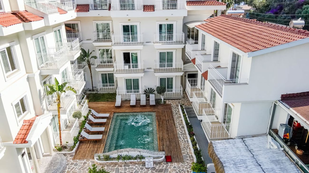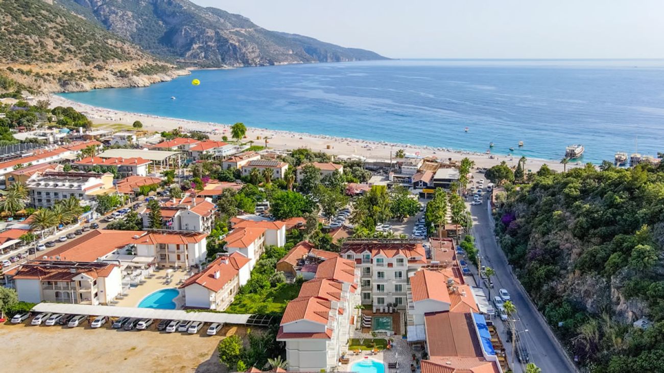 Само на 500 м. от началото на Ликийския път - популярен пешеходен маршрут в Анталия, и на около 40 м. от летището в Даламан.