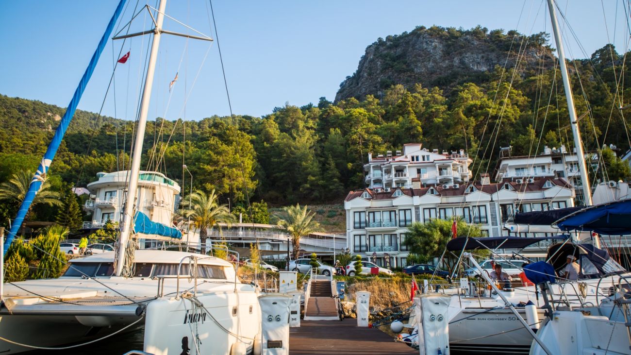 Разположен срещу пристанището, на около 40 мин. път с кола от летището в Даламан.