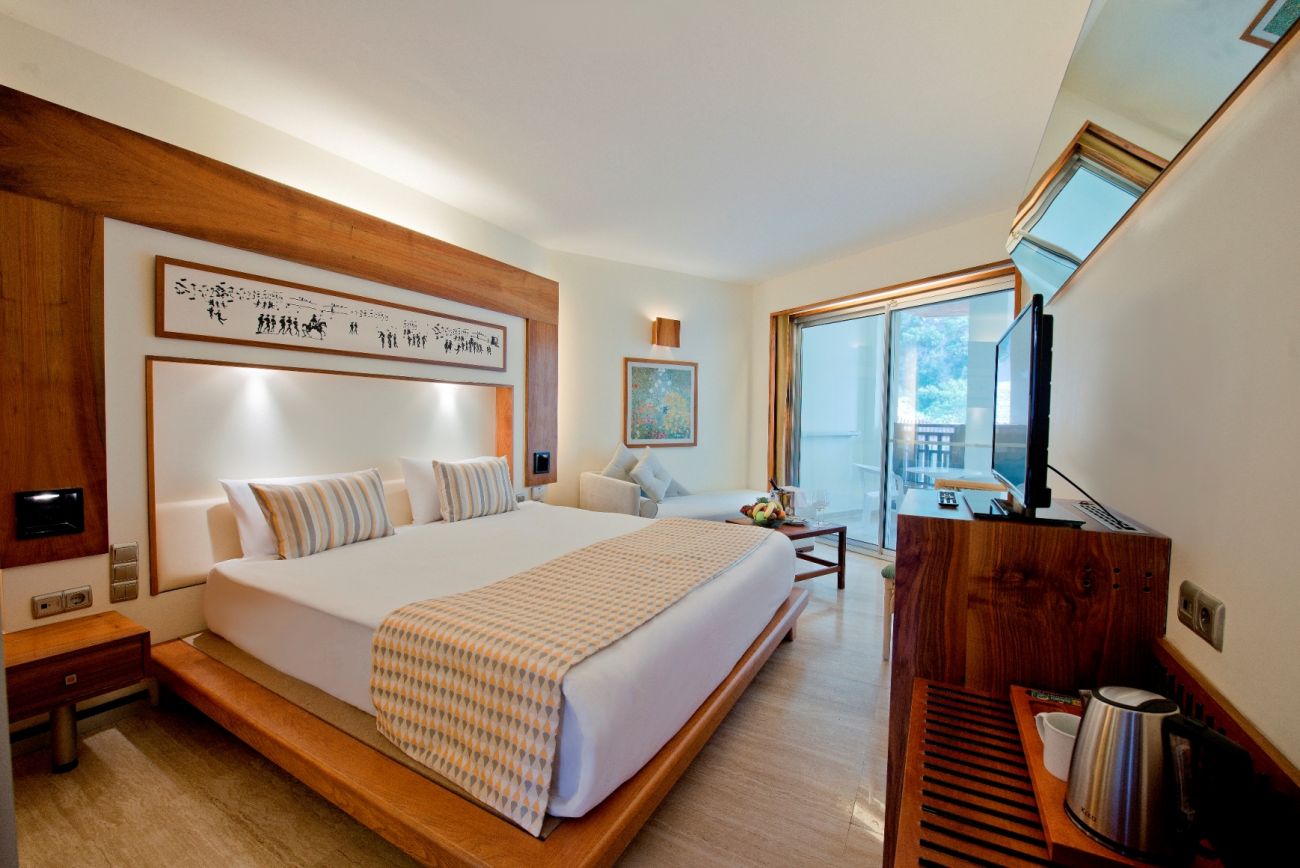 Стаите са с изглед море, страничен изглед към морето или към градината. Всички са оборудвани с минибар, телевизор, сет за чай и кафе, телефон, сейф, сешоар и разполагат с балкон.