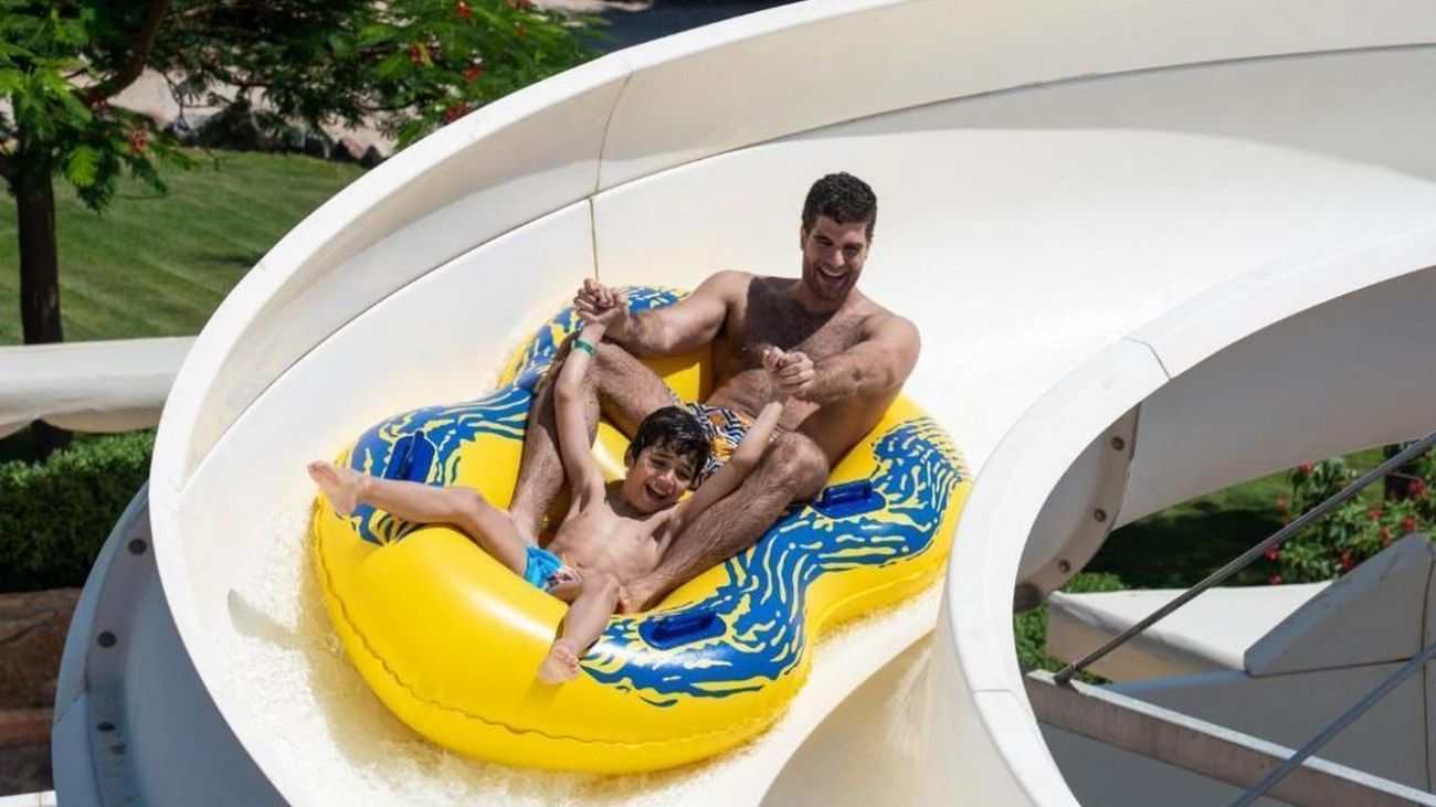 Desert Rose 5* разполага със собствен девствен пясъчен плаж с дължина от 1км, с 40 000 м² природна лагуна със златист пясък. Хотелът предлага на своите клиенти идеална атмосфера за забавления или просто да се насладят на прекрасния ненадминат климат на Червено море. Хотелът разполага с 4 плувни басейна, 1 с олимпийски размери, голям плувен басейн с палуби за слънчеви бани и бар край него, отопляем семеен плувен басейн и детски плувен басейн, специализиран за бебета и малки деца със собствен мини душ и мини столове. Като допълнение Аквапаркът предлага още и 6 водни пързалки.