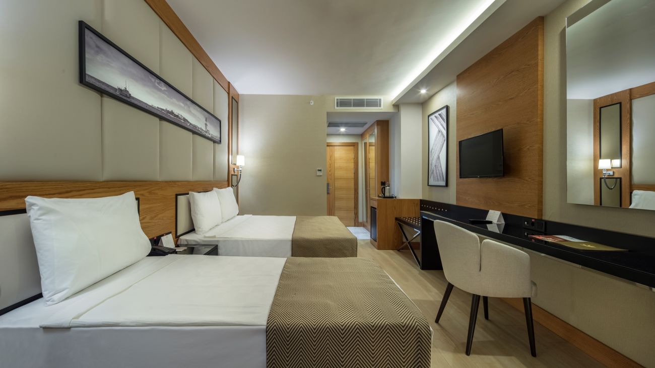 Разполагат с климатик, телефон, телевизор, минибар, сейф, сет за чай и кафе, белкон.