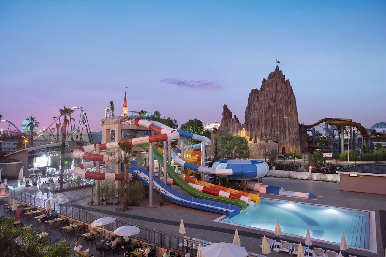 Вътрешен и външен басейн, детски басейн, водни пързалки, анимация, аеробика, гимнастика, сауна, турска баня, фитнес.