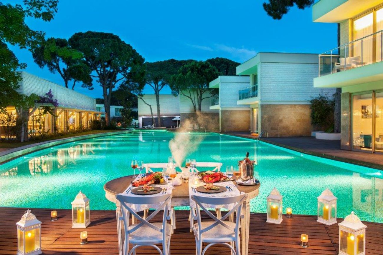 Основен ресторант на All Inclusive база, 7 а-ла-карт ресторанта - италиански, френски, азиатски, турски, морски, 14 бара, 4 снек ресторанта, кафене.