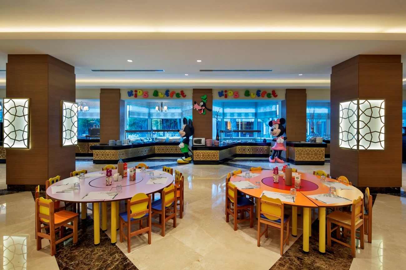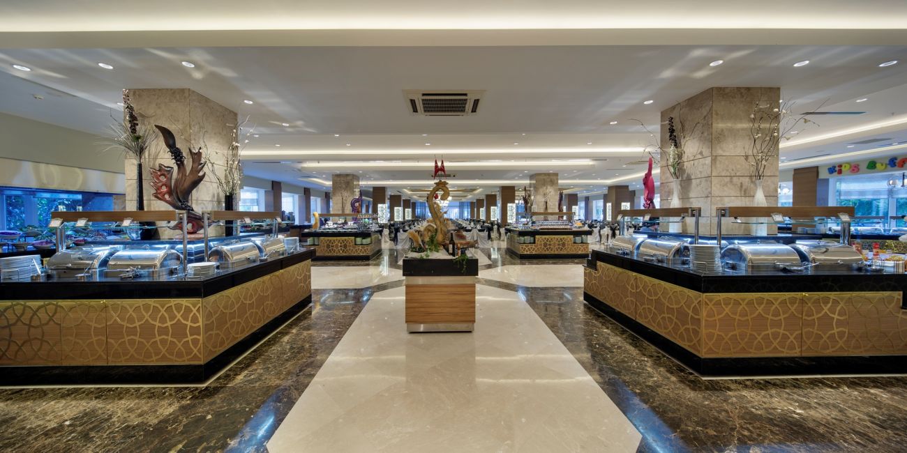 Настаняване на High Class All Inclusive на отворен бюфет в основен ресторант на хотела с вътрешна и външна част. 3 а-ла-карт ресторанта: средиземноморски, източен и мексикански. Снек бар и 3 бара.