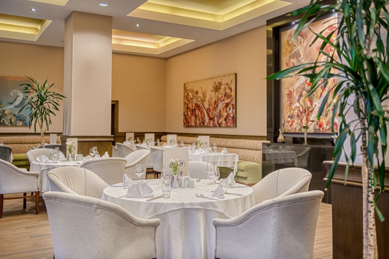 1 основен ресторант на отворен бюфет, 3 а ла карт ресторанта, снек ресторант, сладкарница, лоби бар, бар на плажа, бар на кея, 8 други бара, разположени в общите части по цялата територия на хотела, дискотека на плажа.