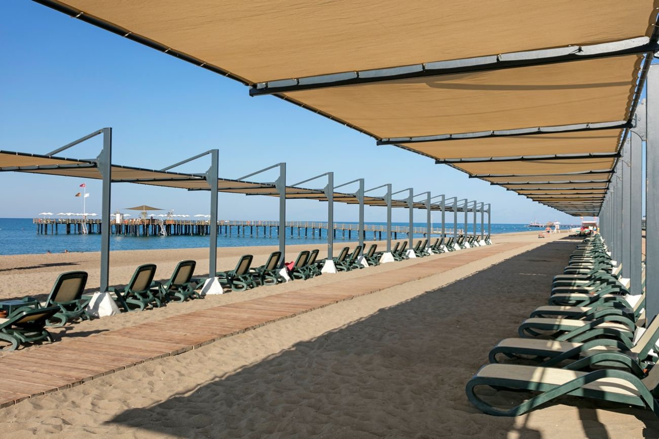 Разположен е на брега и притежава собствен пясъчно-чакълест плаж с дължина 415 м. и кей. Чадърите и шезлонгите са безплатни. Плажните шатри са срещу заплащане. Има обособена зона от плажа, която е само за възрастни.