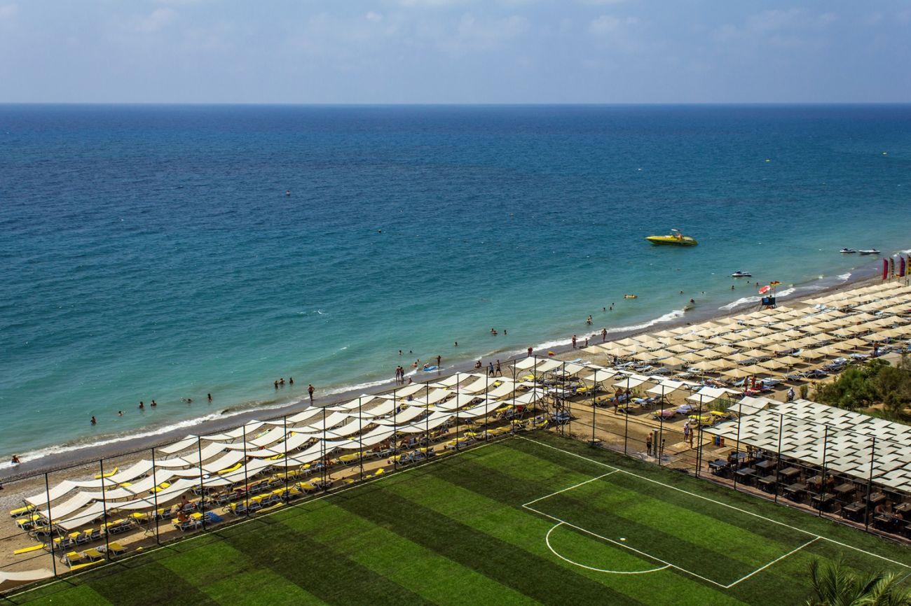 Хотелът е на 100 м. от морето и има собствен плаж с безплатни чадър и шезлонги. Плажът е комбиниран - пясък и камъчета.