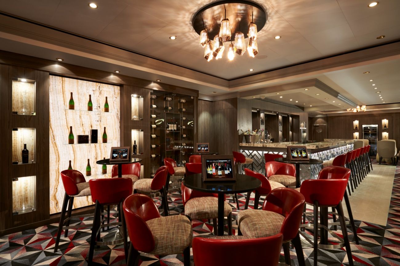 На кораба има 9 различни бара, които предлагат голямо разнообразие от коктейли, шампанско бар, саке бар, Хавана клуб с премиум пури, дори фамилна винарна с вина от Напа Валей.