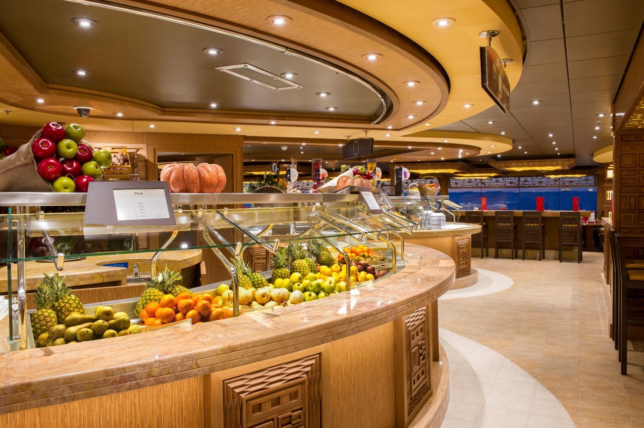 2 основни ресторанта, 2 бюфет ресторанта, Butcher`s cut – американски стек хаус, Суши ресторант, 9 бара на закрито и 3 на откритите палуби, дискотека.