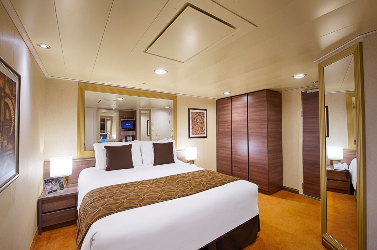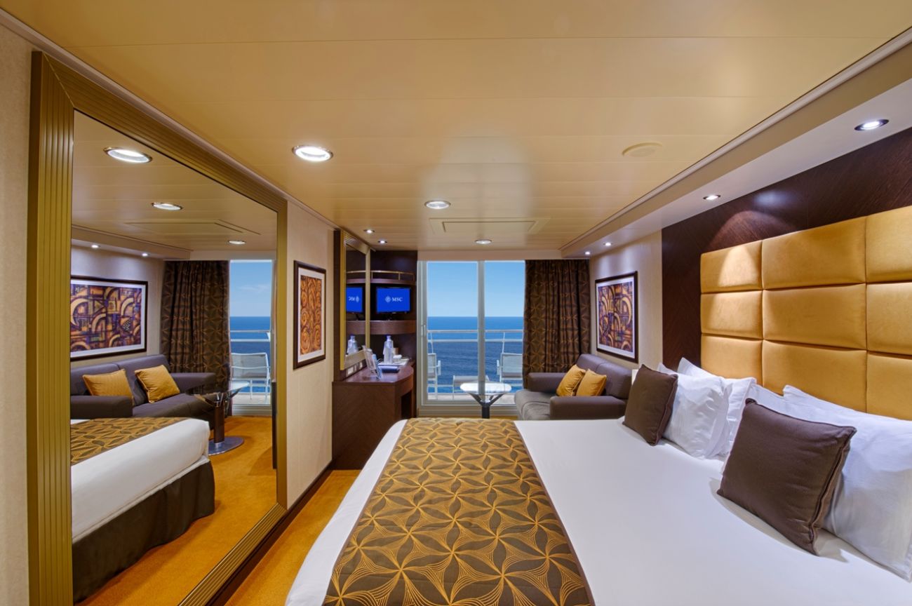 Каюти с балкон, каюти с прозорец / не се отваря /, вътрешни каюти, каюти за инвалиди. Всички с интерактивна ТВ, телефон, сейф, минибар, климатик, интернет срещу заплащане.