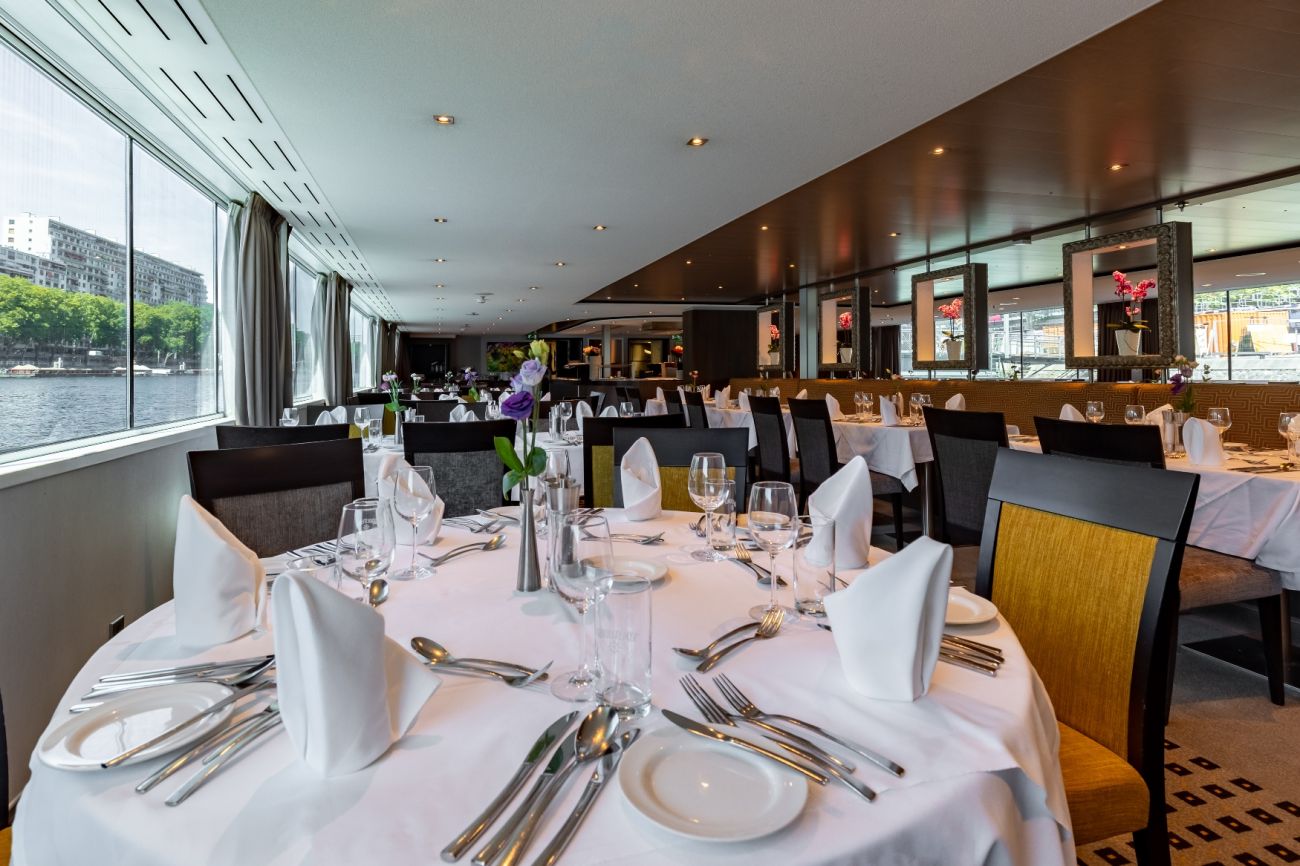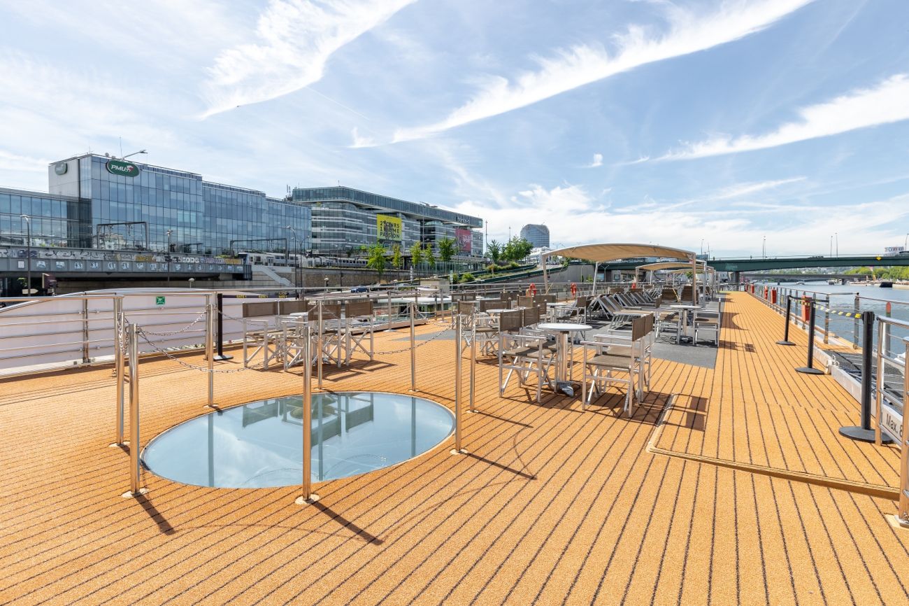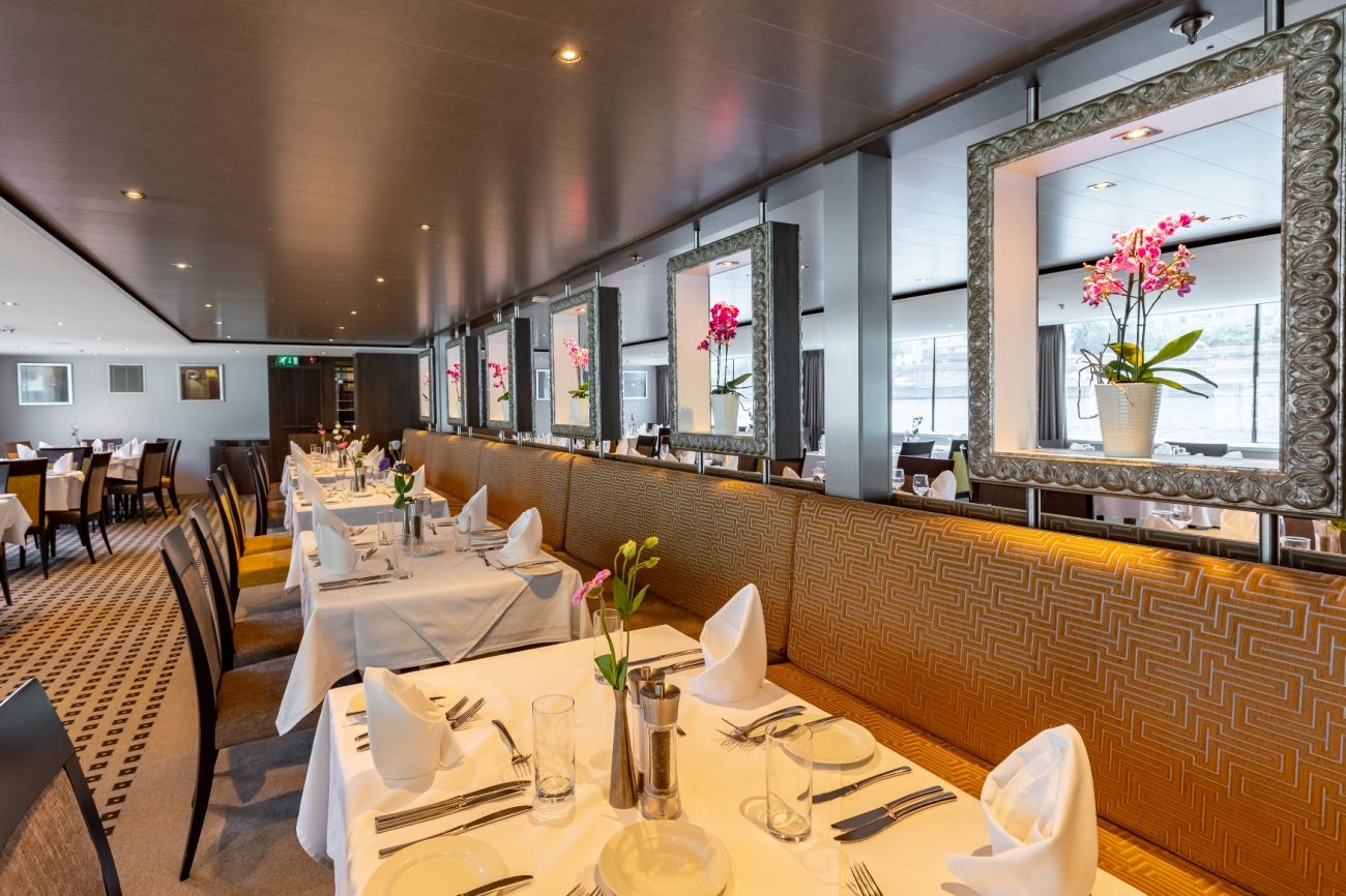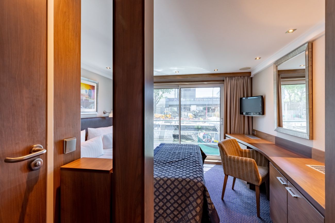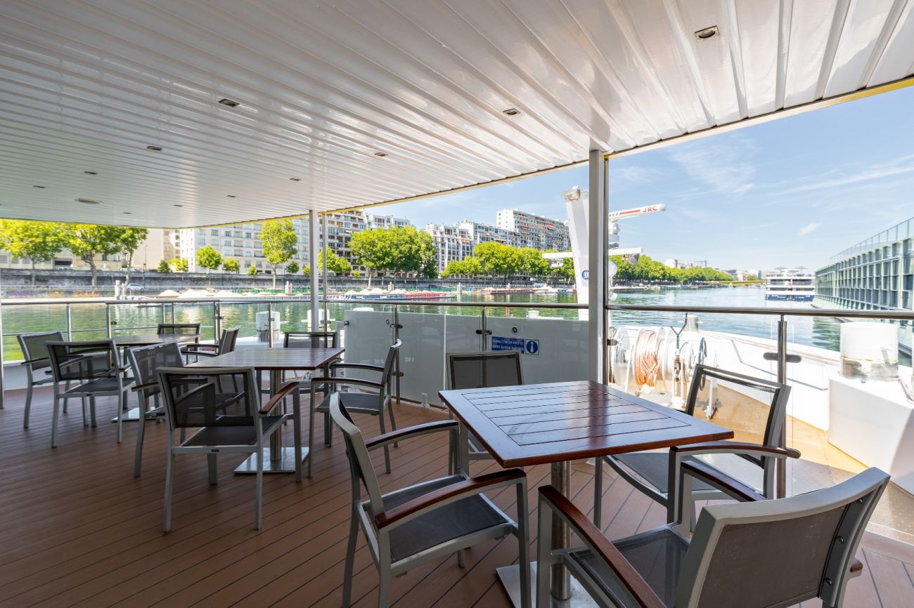 Горна палуба има 24 каюти и 4 суити с панорамни френски прозорци.