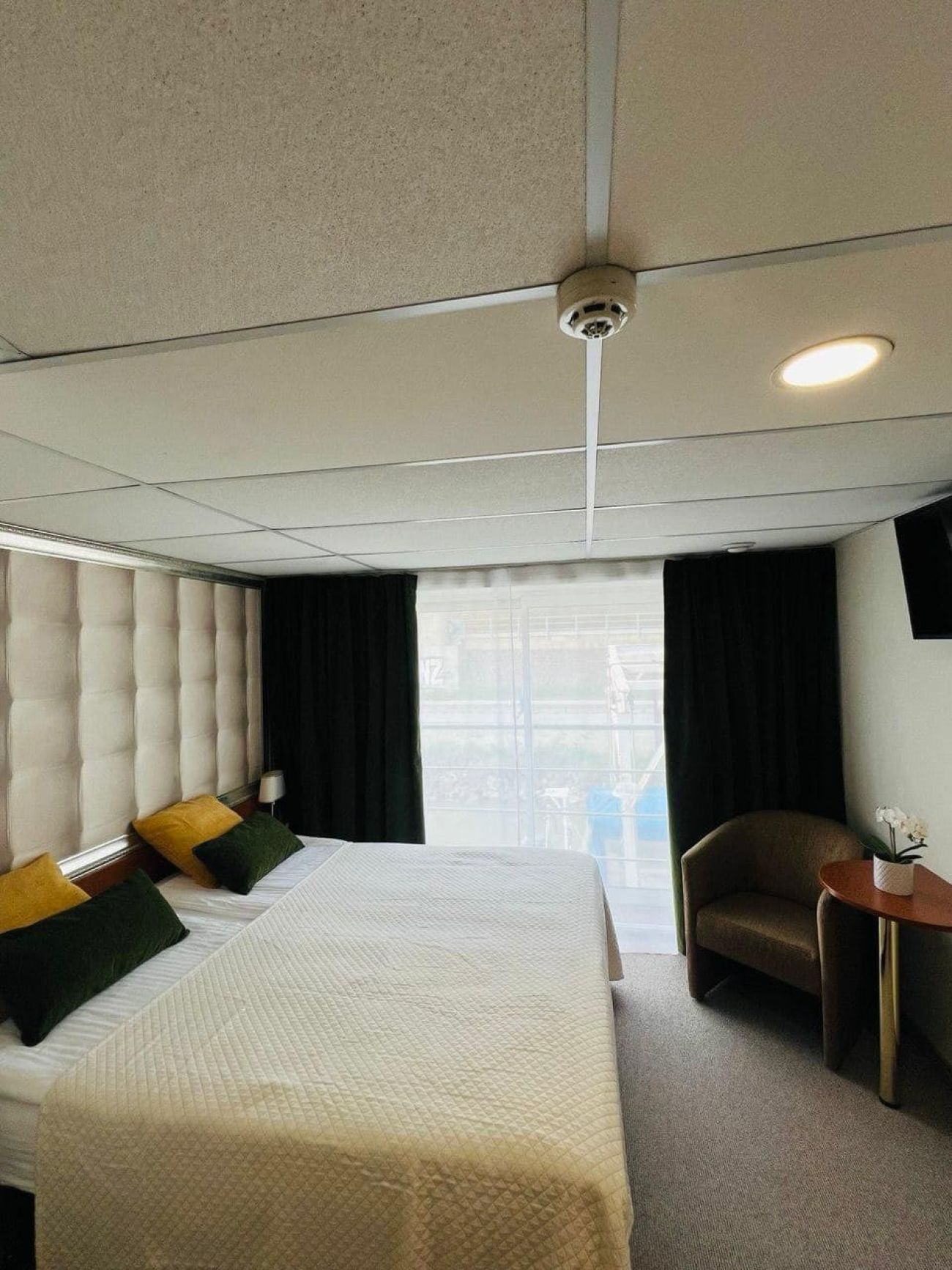 На борда ще откриете, ресторант, панорамен бар, слънчева палуба с шезлонги и басейн, малък фитнес и сауна.