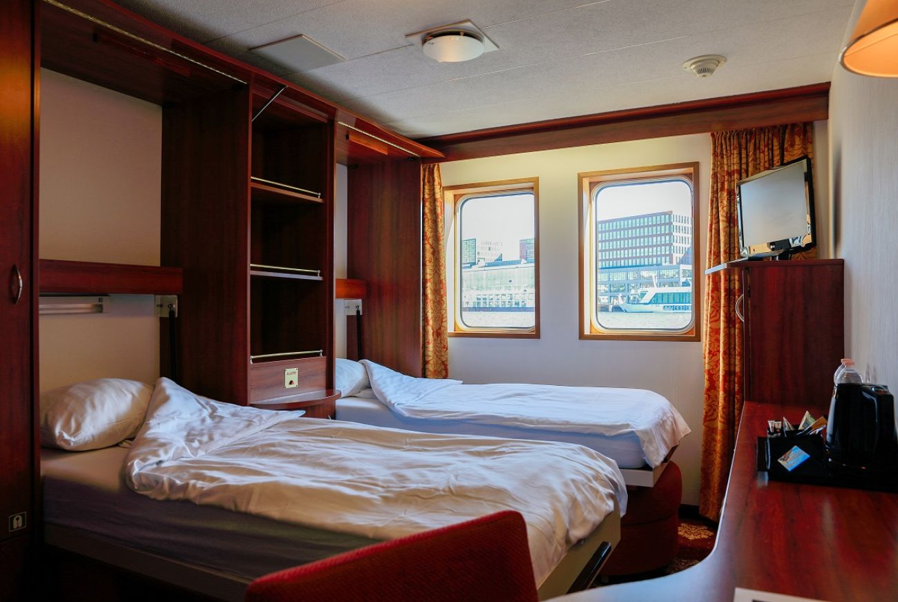 Каютите на средната палуба са с 2 легла хотелски тип, които могат да бъдат разположени заедно или отделно. Имат големи френски прозорци.